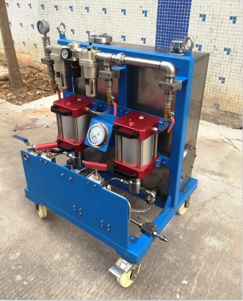 氣動試壓泵是根據(jù)氣動試壓裝置的工作原理研制而成的一種試壓泵。它是使用壓縮空氣為動力源,以氣動泵為壓力源,輸出液壓力與氣源壓力成比例。通過對氣源壓力的調(diào)整,便能得到相應的液壓力。當氣壓力與液壓力平衡時,氣動泵便停止充壓,輸出液壓力也就穩(wěn)定在預調(diào)的壓力上,通過控制進氣量大小,從而控制升壓速度。因而具有防爆、輸山壓力可調(diào)、升壓速度可控、體積小、重量輕、操作簡單、性能可靠、適用范同廣等特點。它特別適用于油田鉆采工程的防噴設備、閥門、管道、連接件、壓力容器等受壓設備的高壓和超高壓試壓檢驗。同時也適合科研、檢驗部門作檢測工具。氣動打壓泵主要用于石油化工工程的防噴器、閥門、管道、鍋爐等一切承壓容器進行液體試壓檢測。(泵可作防噴器控制系統(tǒng)中壓力源)。 氣動打壓泵是我公司根據(jù)從國外引進的氣動試壓裝置的工作原理,結合我國的實際情況研制而成的一種新型試壓裝置。它是使用壓縮空氣動力源,以氣動泵為壓力,輸出液壓力與氣源壓力成比例。通過對氣源壓力的調(diào)整,便能得到相應的液壓力。當氣壓力與液壓力平衡時,氣動泵便停止充壓,輸出液壓力也就穩(wěn)定在預調(diào)的壓力上,通過控制進氣量大小,從而控制升壓速度。因而具有防爆、輸出壓力可調(diào)、升壓速度可控、體積小、重量輕、操作簡單、性能可靠、適用范圍廣等特點。它特別使用于油田鉆采工程的防噴設備、閥門、管道、連接件、壓力容器等受壓設備的高壓和超高壓試壓檢驗。同時也適合科研、檢驗部門作檢測工具。